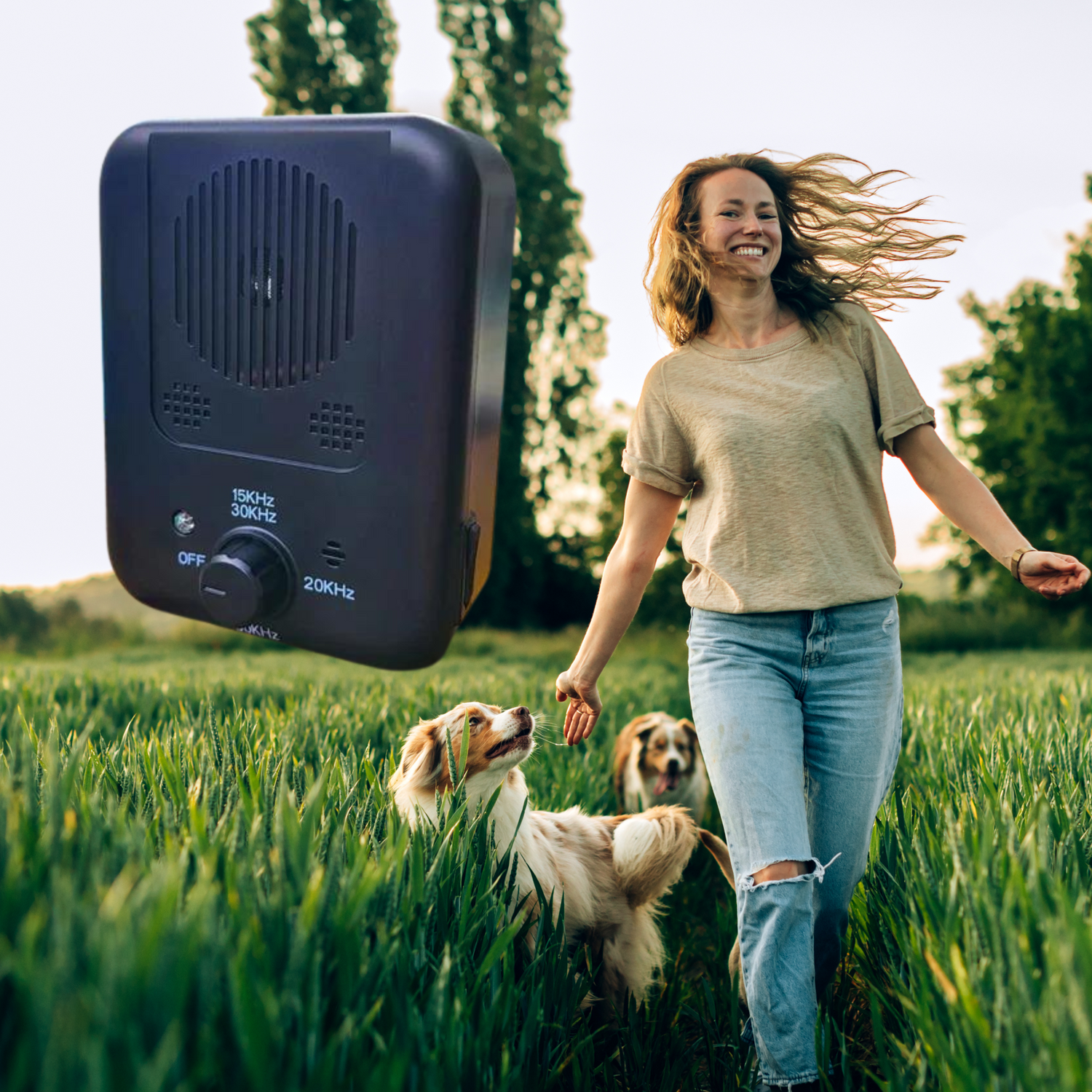 With three adjustable sound levels, you can customize for dogs of any size. The high setting is perfect for large breeds, while the low setting suits small dogs with sensitive hearing. Maximum range of 33 feet gives you flexibility in placement around your home or yard.